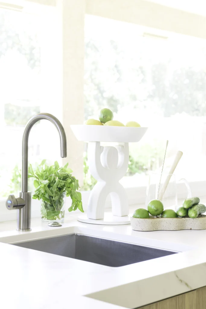 The booth and the people were like an oasis in the desert. Clean, cool sparkling water and industry professionals to match! The Interior Design Society members on the guided tours I led were all just as enchanted. Fast forward and I have been blessed with the opportunity to be Zip Water’s first North American design influencer. It was installed early this fall and has absolutely changed the game for me in my kitchen and my household. The HydroTap delivers filtered cold, boiling and sparkling water in addition to the regular hot and cold water supply. It sterilizes knives and cookware, cooks veggies like broccolini and asparagus simply by soaking them in dispensed boiling water. Spinach and swiss chard are blanched in a snap! And no more waiting around for water to boil…pasta cooking time is cut in half.